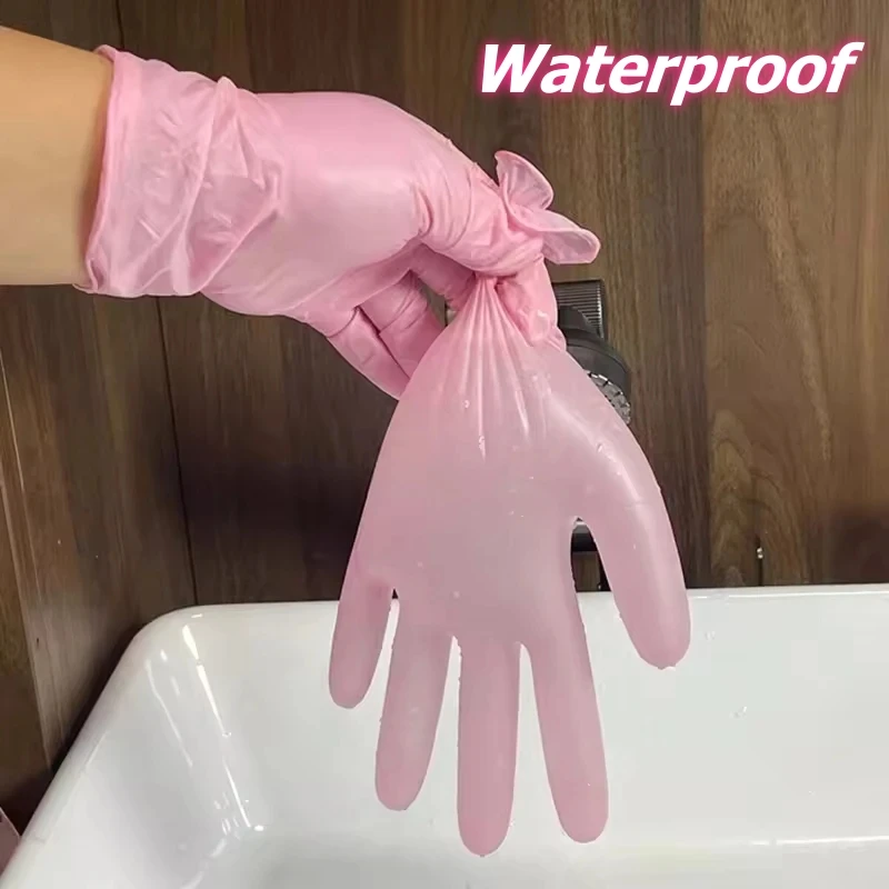 50/100PCS Pink Nitrile Disposable Gloves Latex Free