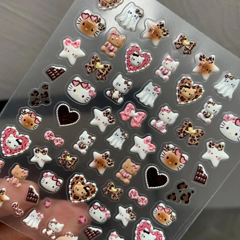 Unleash your wild side with these audacious 5D leopard print nail decals featuring adorable kitty heads. Each of the two pieces delivers dimensional depth and eye-catching texture that transforms your nails into a statement. The bold feline design pairs fierce leopard spots with cute cat faces for an unexpected twist—perfect for those who refuse to play it safe. Easy application and long-lasting wear mean you can rock this daring look whenever the mood strikes. Stand out from the crowd with nails that demand attention.