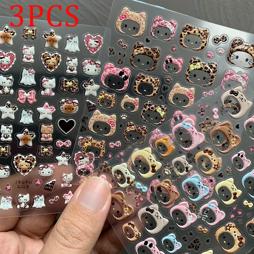2pcs 5D Cute Leopard Print Kitty Head Nail Decal