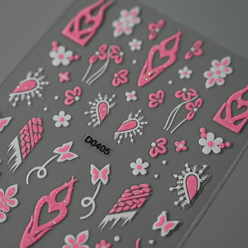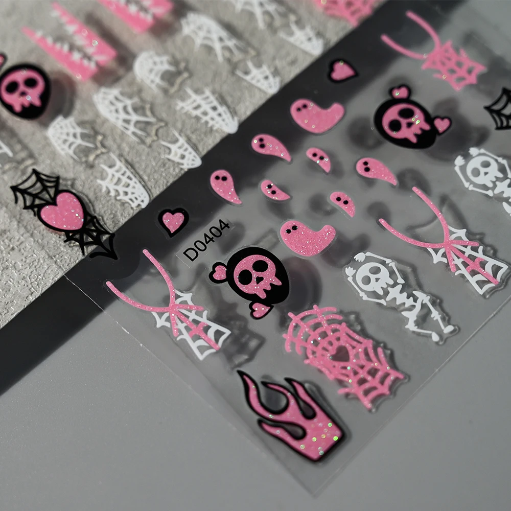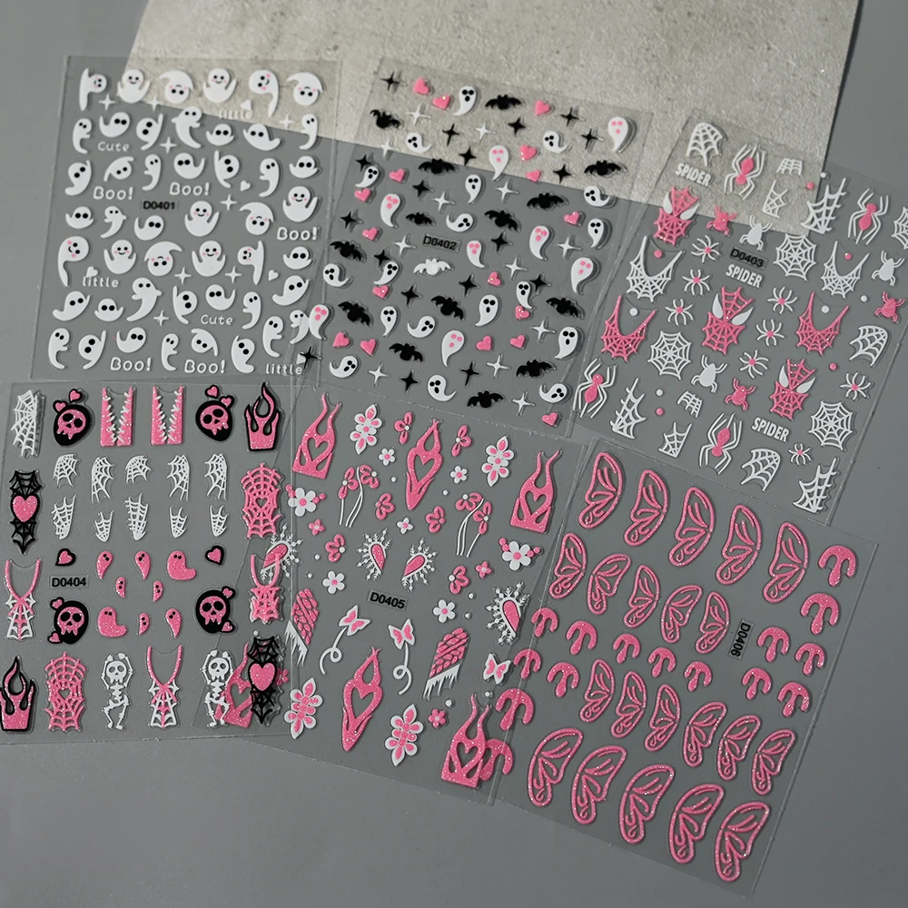 6pcs Pink White Glitter Halloween Nail Stickers 3D