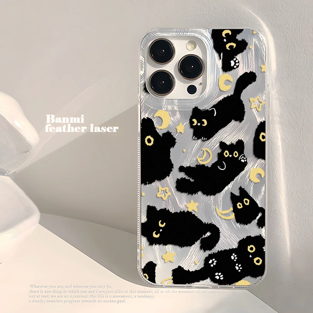 Protect your phone with edge. This sleek black cat case features a bold laser-etched silver feather texture that catches light and turns heads. Engineered with shockproof technology to guard against drops and impacts, it's the fearless accessory for iPhone 11, 12, 13, 14, 15, 16, Pro, Max, and Plus models. Minimalist design meets maximum protection—because your phone deserves attitude as much as armor.