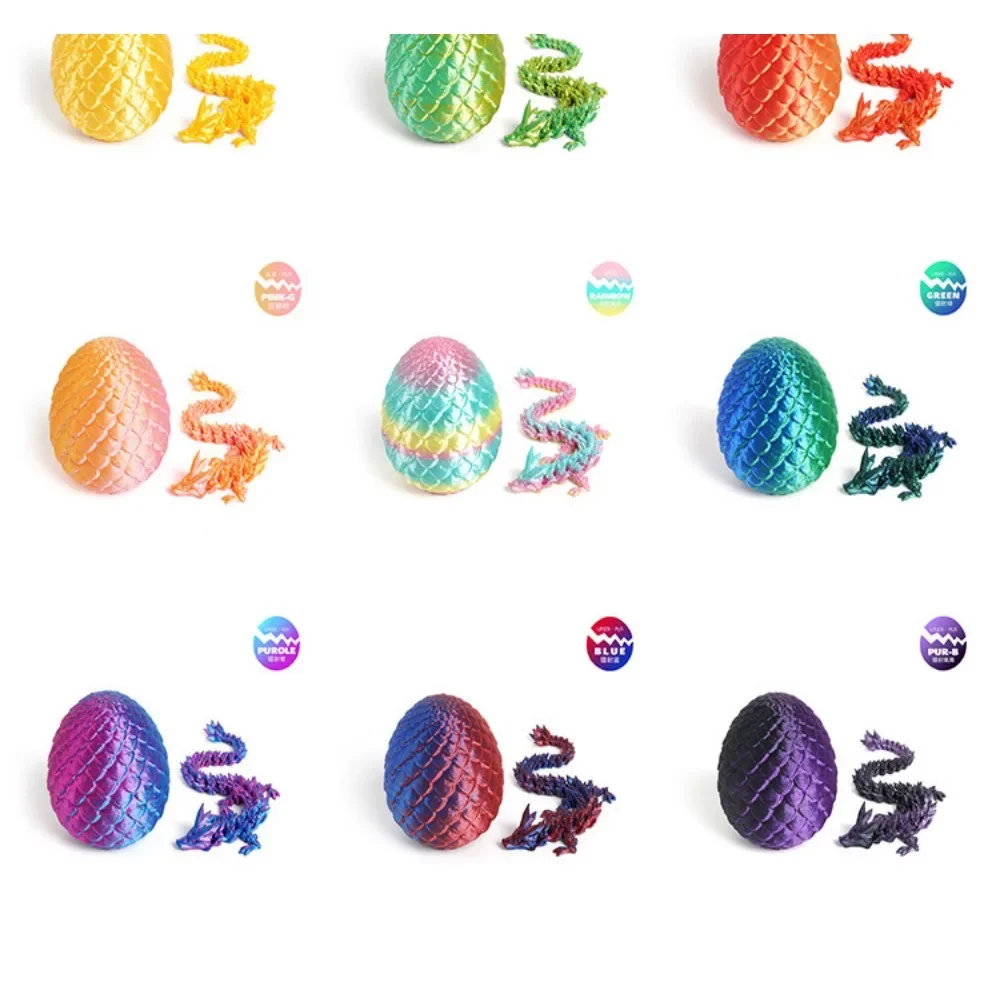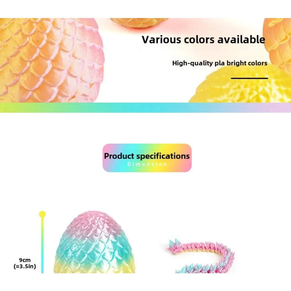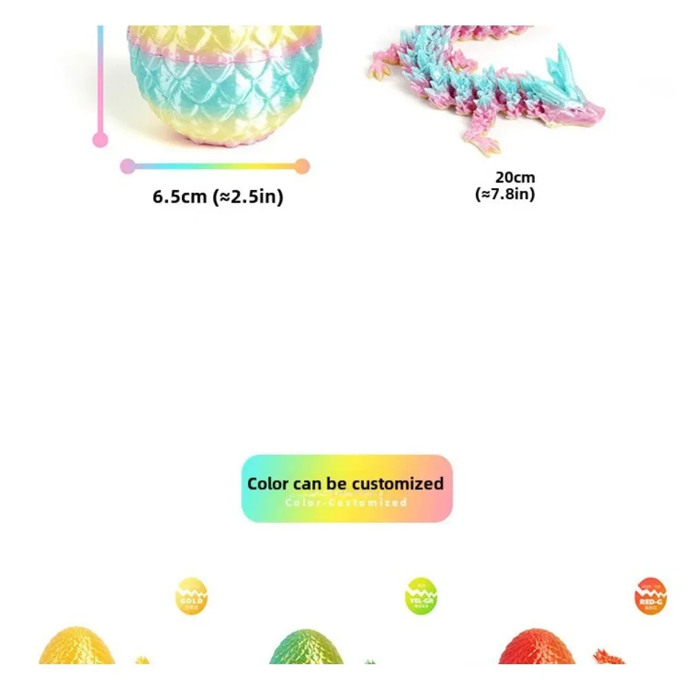 Unleash endless surprises with our 20CM 3D Printed Gem Articulated Dragon. Poseable joints, a mysterious dragon egg, and the ability to rotate will provide hours of entertainment. Get ready to fidget and have a blast with this unique toy set. (Eggcellent!)