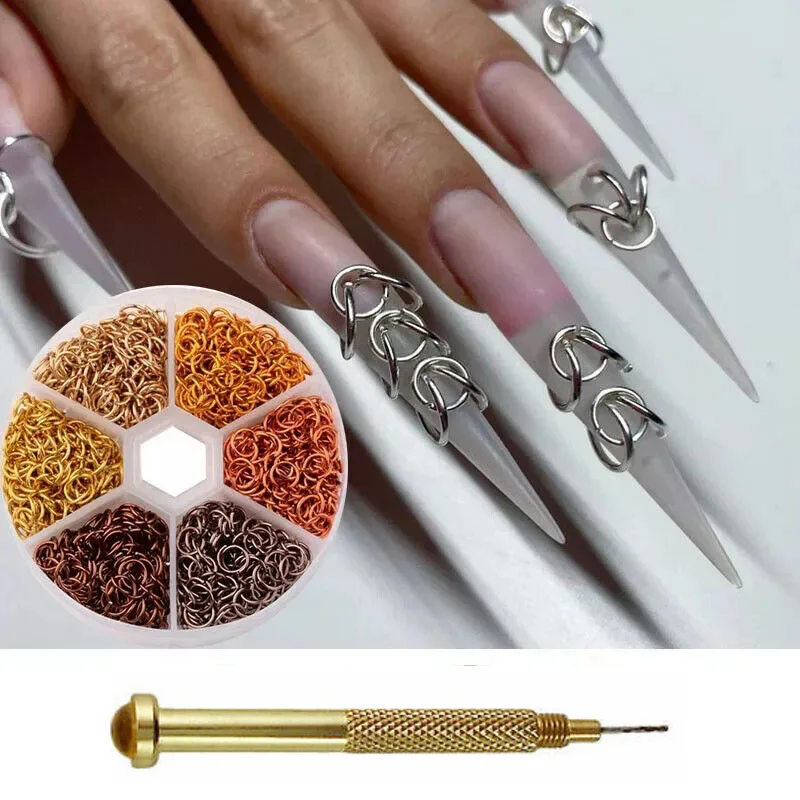 Transform your manicure into a bold statement with these edgy nail piercing charms. This 1080-piece collection features metal alloy designs perfect for creating punk-inspired nail art that demands attention. Each open ring charm dangles effortlessly from your nails, adding an unconventional edge to your look. Mix and match metallic finishes to customize your design—ideal for those who refuse to play it safe with their style. Elevate your nail game with accessories that celebrate individuality and attitude.