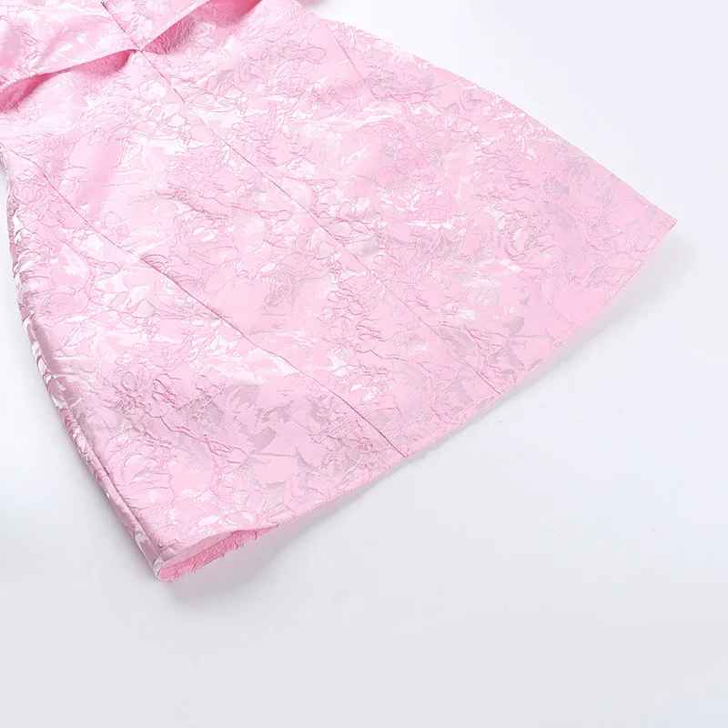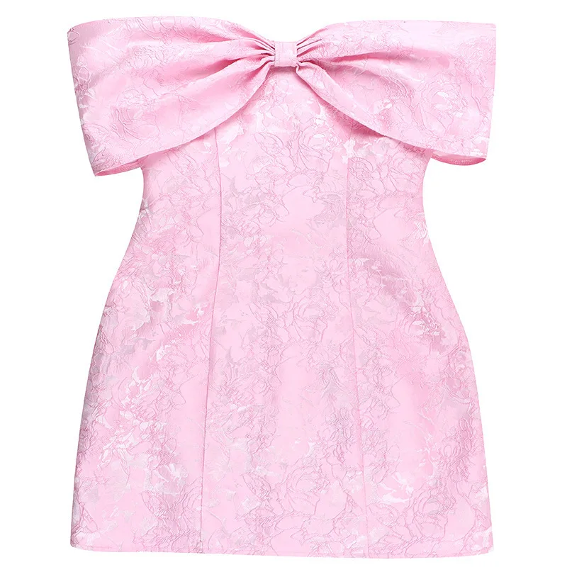 This strapless jacquard dress commands attention with its bold backless design and dramatic bow detail. The fitted bodycon silhouette hugs your curves while the mini length keeps things daring and modern. Perfect for evening events, parties, or nights when you want to make a statement. The elegant jacquard fabric adds texture and sophistication, while the sexy cutout back ensures all eyes stay on you. Versatile enough for summer occasions or dressed up for cocktail hour—this is the dress that refuses to blend in.