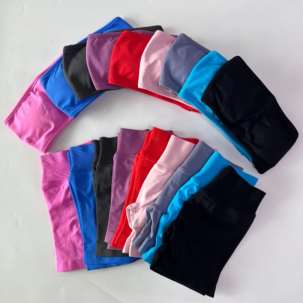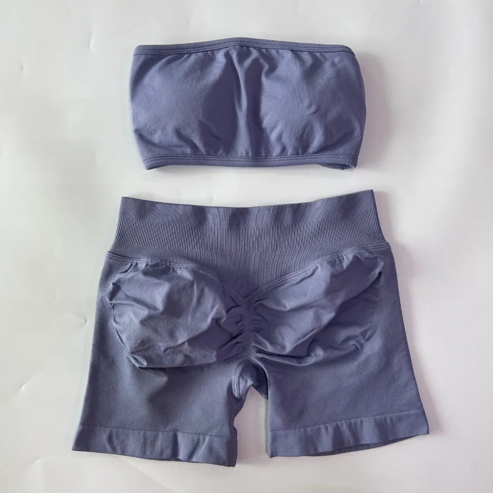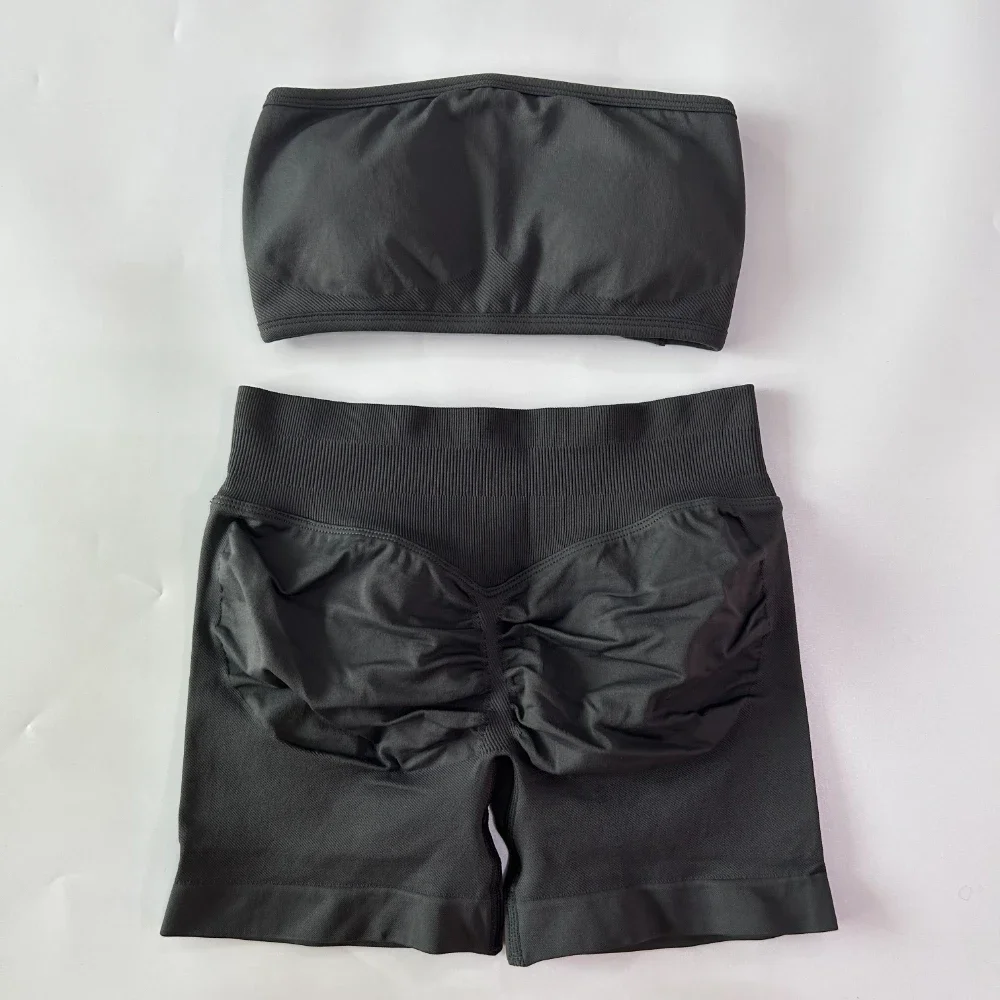 2 Pieces Yoga Set Backless Bandeau Scrunch Shorts
