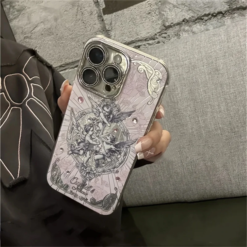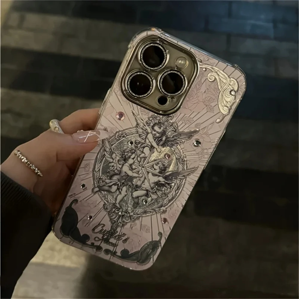 # Retro Cupid Angel Aurora Laser Phone Case For iPhone 16 15 14 13 12 Pro Max 11 Luxury Glitter Lens Protective Cover Dare to stand out with this audacious phone case that fuses vintage aesthetics with modern edge. Featuring a mesmerizing aurora laser effect and shimmering glitter accents, it transforms your device into a statement piece. The protective design shields your iPhone while the cupid angel motif channels celestial rebellion. Compatible across multiple iPhone models, this luxury cover demands attention—perfect for those bold enough to reject the ordinary and embrace unapologetic glamour.